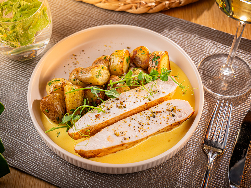 Rolované kuracie prsia plnené hermelínom, baby špenátom a sušenými brusnicami